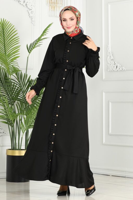 فستان الحجاب ذو التنورة المنتفخة هو منتج حجاب نموذجي. يمكن استخدامه في موسم الفصول الأربعة. يجب غسله على درجة حرارة 30 درجة دون عصر. وهي مصنوعة من قماش سكوبا كريب من الدرجة الأولى. المنتج عبارة عن ياقة قميص. المنتج مزود بأزرار في الأمام. إنه غير مُبطن. (المنتج الموجود في الموديل هو مقاس 38.) لمنع الحزام من الرفرفة، يتم خياطة كلا الطرفين، ويترك الجزء الأوسط فارغًا (غير مخيط). الحزام متضمن في المنتج، ولا يجوز استخدامه اختياريًا. الكفة مرنة.