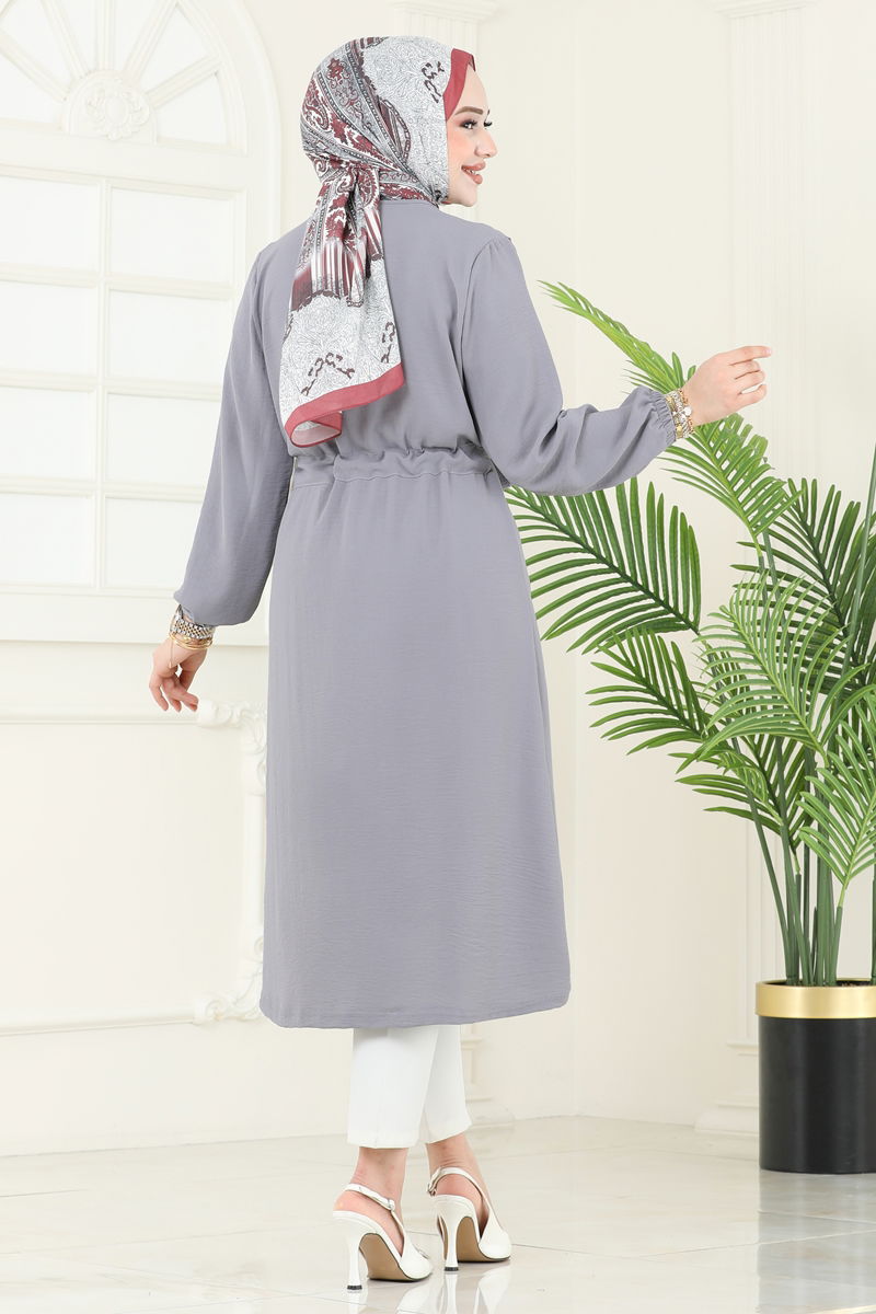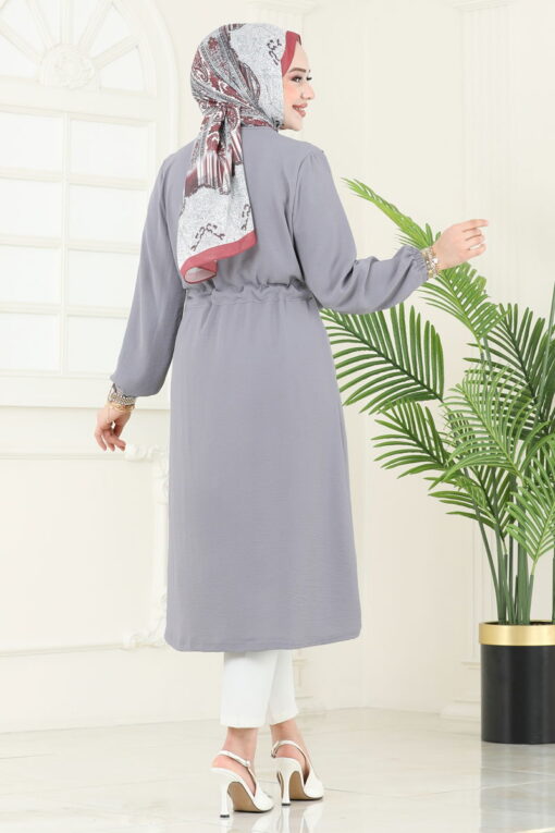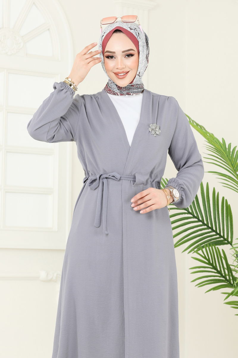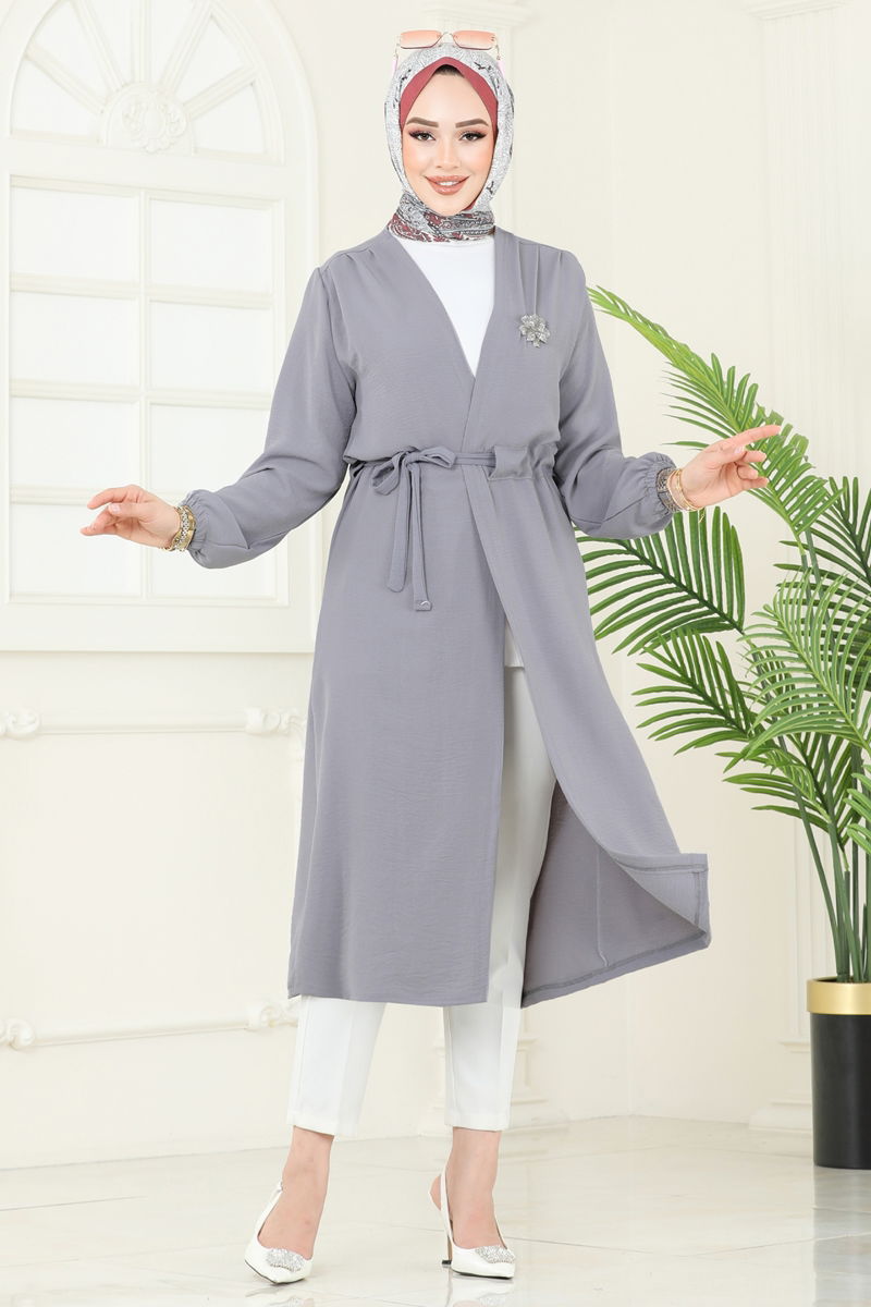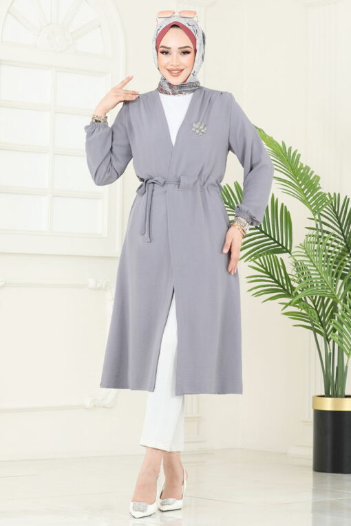 تفاصيل المنتج: إنه منتج أزياء الحجاب للموسم الجديد. المنتج لديه طوق على شكل V. إنه غير مُبطّن. يتم خياطة الحزام على المنتج. المنتج لا يتضمن الملحقات. الكفة مرنة. بسبب التصوير الفوتوغرافي المفاهيمي، قد تكون هناك اختلافات في درجة اللون في المنتج.