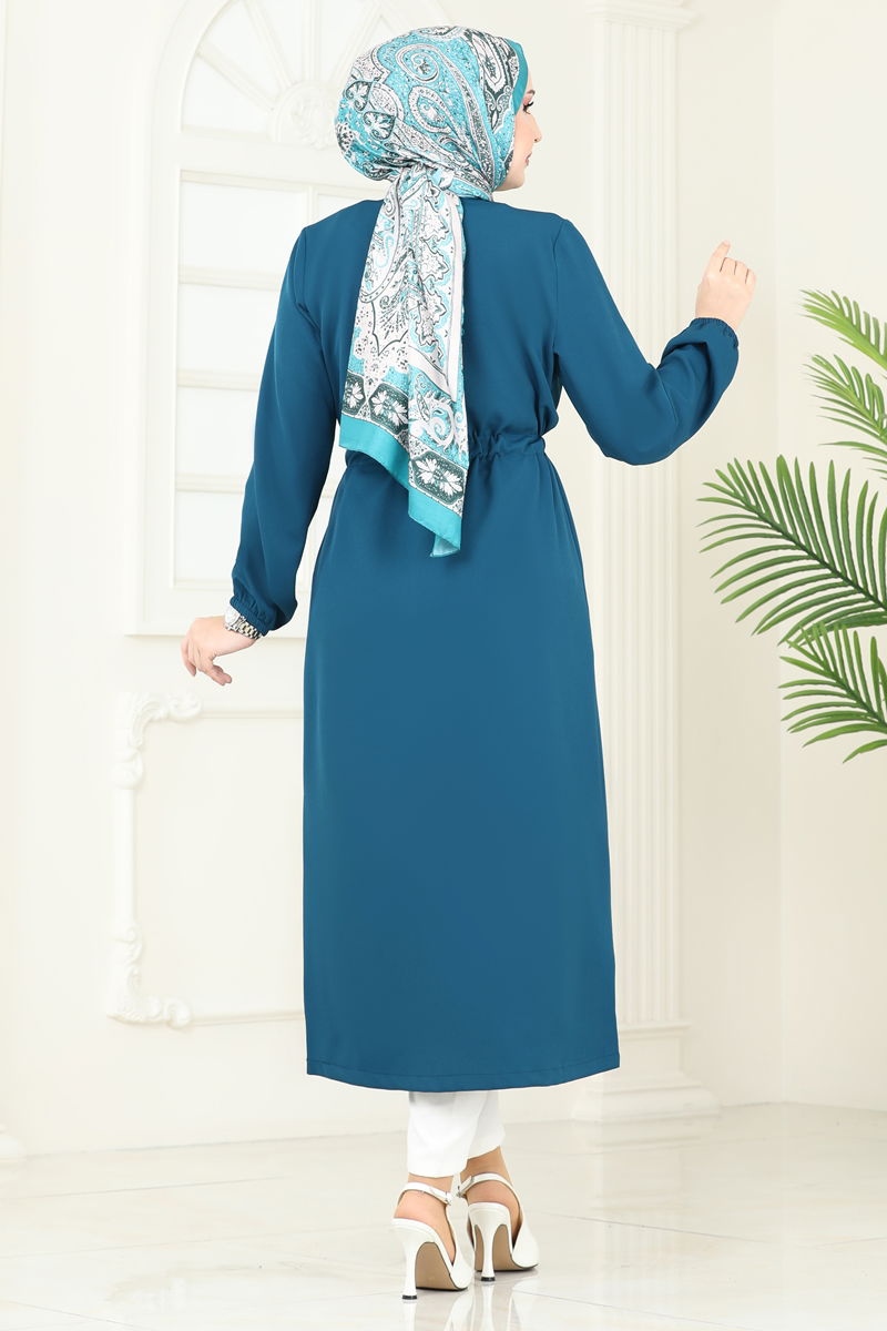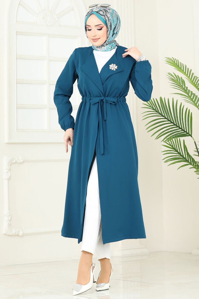 تفاصيل المنتج: إنه منتج أزياء الحجاب للموسم الجديد. يحتوي على خصر برباط. المنتج يحتوي على طوق مزدوج الصدر. إنها تحتوي على شق، وهي غير مبطنة. المنتج لا يتضمن الملحقات. الكفة مرنة. بسبب التصوير الفوتوغرافي المفاهيمي، قد تكون هناك اختلافات في درجة اللون في المنتج.