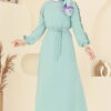 يتميز هذا الفستان الشيفون ذو الأكمام المرنة بتصميمه الأنيق والعصري، وهو مثالي للحفاظ على أناقتك في أي بيئة. هذا الفستان المحجبات الذي يمكنك ارتداؤه بشكل مريح في جميع فصول السنة، يلفت الانتباه أيضًا بفضل قدرته على الغسل بدرجة حرارة 30 درجة في ظروف دقيقة. مصنوع من قماش الشيفون، هذا المنتج له رقبة دائرية وتصميم مبطن. السحاب الموجود على الظهر يجعل من السهل ارتداؤه وخلعها. تضيف تفاصيل الحزام الموجودة في الفستان لمسة أنيقة إلى أسلوبك، بينما توفر الأكمام المرنة الراحة.