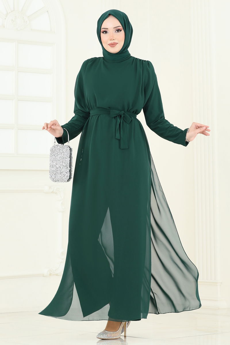توفر البدلة الشيفون ذات الحزام الراحة في جميع الفصول الأربعة بتصميمها العصري والأنيق. هذه البدلة التي يوصى بتنظيفها بغسيل لطيف على درجة حرارة 30 درجة مئوية، مصنوعة من مزيج من الشيفون والقماش الرملي. تزداد فائدته بفضل تصميم طوق الدراجة وتفاصيل السحاب الخلفي. تم تصميم هذه الجمبسوت المحجبات لإطلالة أنيقة ومريحة، وهي غير مبطنة وتناسب مجموعة واسعة من المقاسات. تم تصميم الحزام المقدم مع البدلة ليتم خياطته من كلا الطرفين لمنع الرفرفة، ويتم ترك الجزء الأوسط بدون خياطته. تفاصيل الرأس تكمل أناقة البدلة. يمكن إزالة الحزام اختياريا.