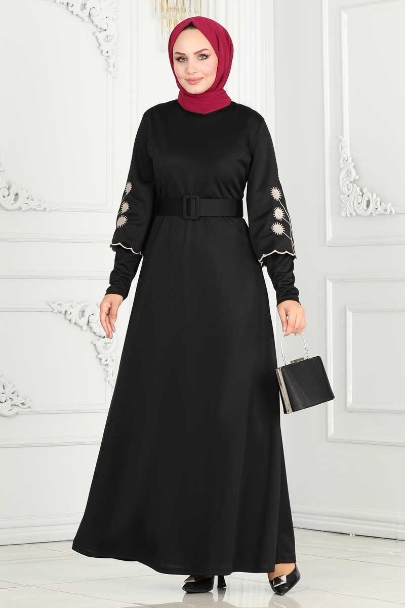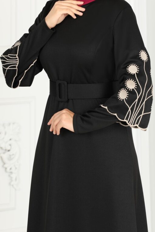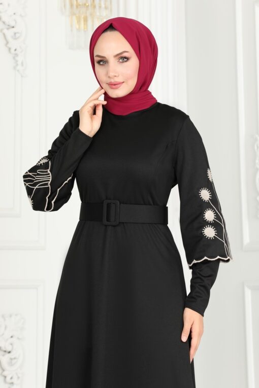 فستان لاتيه محجبات بأكمام مطرزة