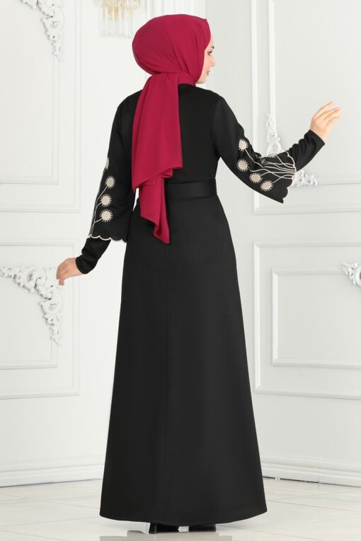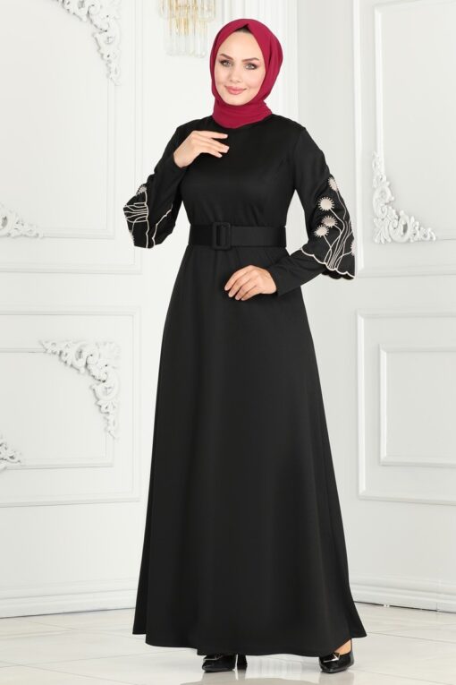 فستان حجاب بأكمام مطرزة هو منتج حجاب نموذجي، يمكن استخدامه في جميع الفصول الأربعة، ويجب غسله عند درجة حرارة 30 درجة، وهو مصنوع من قماش ميرا من الدرجة الأولى، وهو غير مبطن. (المنتج في العارضة مقاس 38.) الارتفاع: 160 سم، الصدر: 86 سم، الخصر: 68 سم، الأرداف: 95 سم، الوزن: 52 كجم. يتم ارتداء الفستان من الرأس لمنع الحزام من الرفرفة، ويتم خياطة كلا الطرفين، ويترك الجزء الأوسط فارغًا (غير مخيط). الحزام متضمن في المنتج، ويمكن استخدامه اختياريًا.