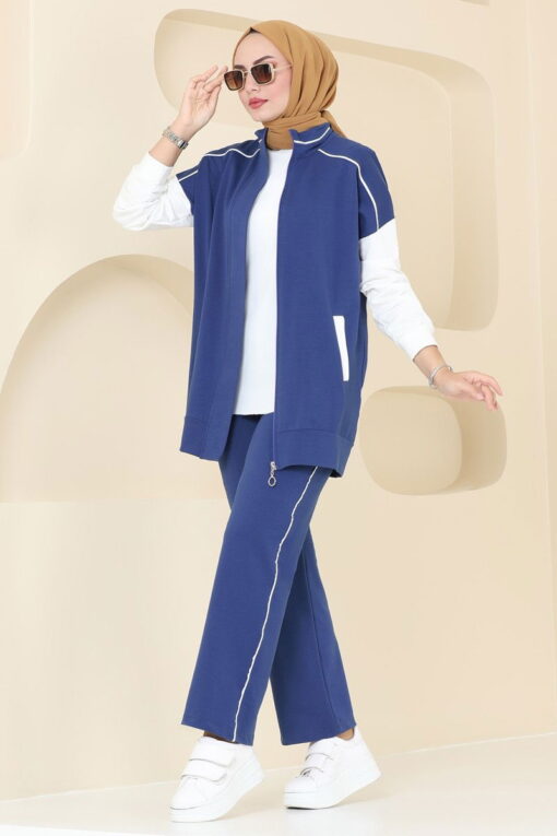 نموذج البدلة الرياضية ذات السحاب المخفي هو منتج للحجاب. يجب غسله على درجة حرارة 30 درجة دون عصر. وهي مصنوعة من قماش من الدرجة الأولى ذو خيطين. المنتج لديه طوق الوقوف. إنه غير مُبطن. يحتوي المنتج على سحاب مخفي في الأمام. (المنتج الموجود في العارضة مقاس 38). خصر البنطال مرن ويوجد جيوب.