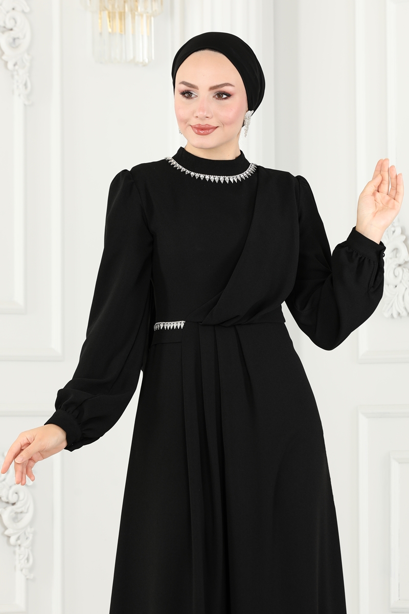 ميزات رؤية فستان السهرة الكريب المفصل بالحجر