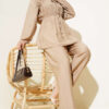 بدلة كريب مزدوجة الصدر هي خيار أنيق وعصري تم تصميمه خصيصًا للارتداء المحتشم. يمكن استخدام هذه المجموعة بشكل مريح في جميع فصول السنة، ويمكن تنظيفها بغسيل رقيق على درجة حرارة 30. مصنوع من قماش الكريب، هذا المنتج له طوق مزدوج الصدر وغير مبطن. يحتوي على زر أمامي مزدوج وخصر مرن للبنطلون لسهولة الاستخدام. إنه يوفر استخدامًا وظيفيًا بفضل جيوبه وأزرار الأكمام النشطة. ملحوظة: البلوزة والإكسسوارات غير متضمنة في السعر.