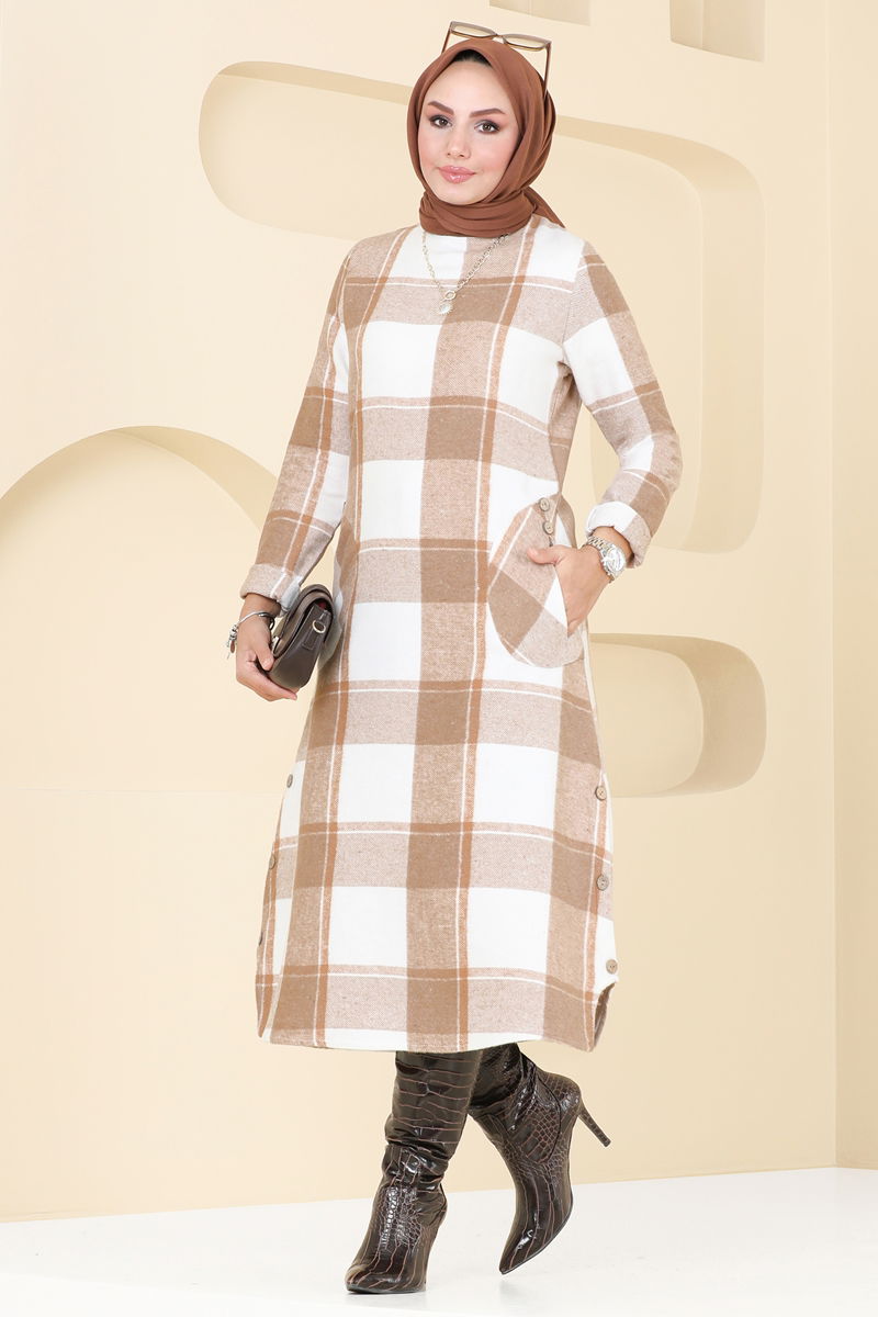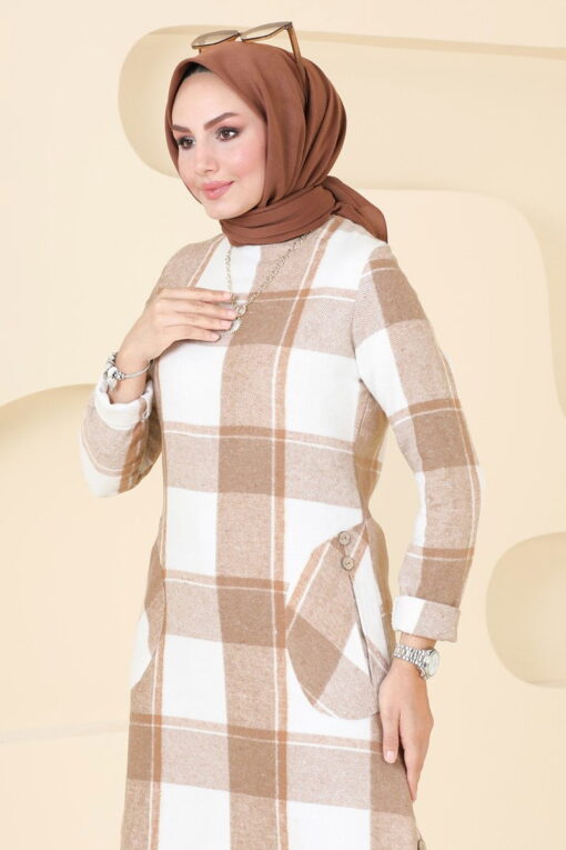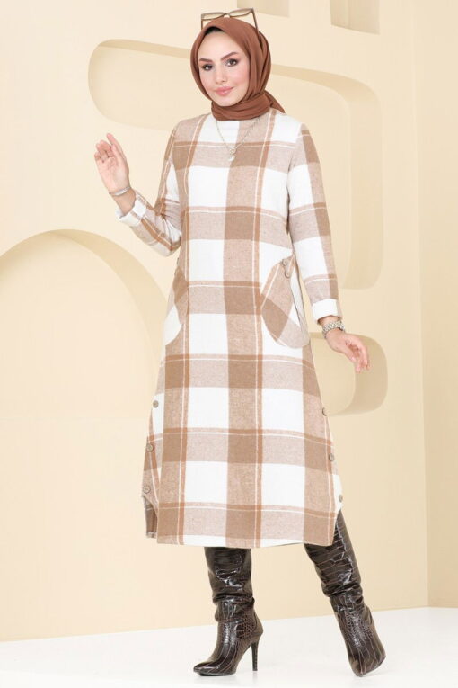 تونيك منقوش مع أزرار ملحقة هو منتج نموذجي للحجاب. يمكن استخدامه في فصلي الخريف والشتاء. يجب غسله على درجة حرارة 30 درجة دون عصر. مصنوعة من قماش منقوش من الدرجة الأولى. المنتج عبارة عن رقبة دائرية. يحتوي المنتج على أزرار في الخلف. إنه غير مُبطن. (حجم المنتج الموجود في العارضة هو 38.) الأزرار هي ملحقات. الجيب متاح.