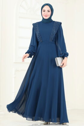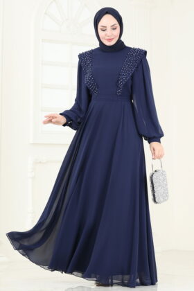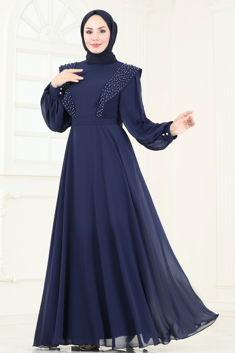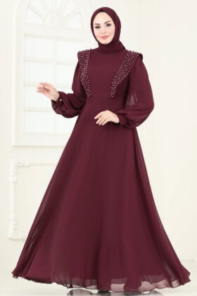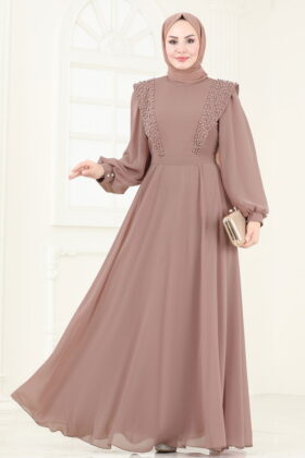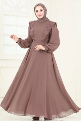 فستان سهرة شيفون بتفاصيل لؤلؤية Vizyon