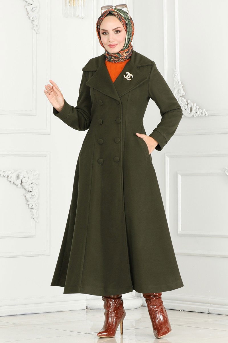 يعتبر موديل معطف Kaşe المستورد ذو الأزرار الأمامية خيارًا مناسبًا لملابس الحجاب. يمكن استخدامه بسهولة في فصلي الخريف والشتاء. يجب تنظيفه فقط بطريقة التنظيف الجاف. مصنوع من قماش ختم مستورد عالي الجودة وغير مبطن. لديها طوق مزدوج الصدر. مقاس المنتج الموجود في الموديل 38. كما أن لديها أزرار وجيوب قابلة للاستخدام في الأمام.