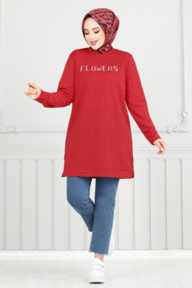 نص منقوش الحجاب سترة حمراء
