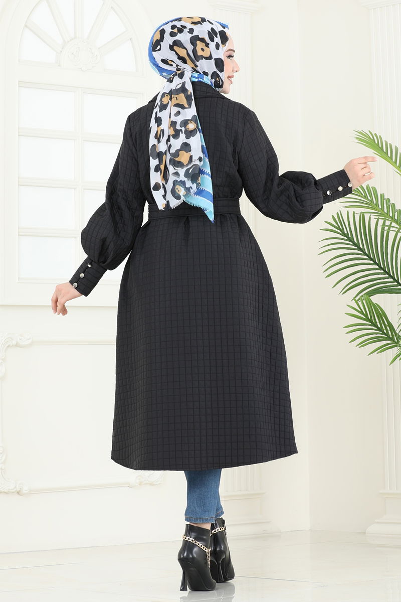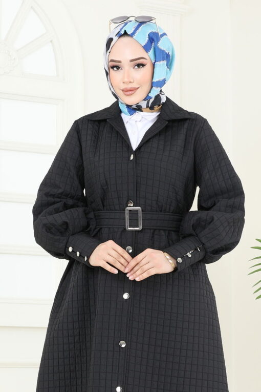 تفاصيل المنتج: إنه منتج أزياء الحجاب للموسم الجديد. المنتج يحتوي على طوق مزدوج الصدر. يجب أن يكون المنتج مُزررًا من الأمام. إنه غير مُبطّن. الحزام متضمن في المنتج، ولا يجوز استخدامه اختياريا. تحتوي على أكمام بالونية، ويوجد بها جيب. أزرار الأكمام نشطة. بسبب التصوير الفوتوغرافي المفاهيمي، قد تكون هناك اختلافات في درجة اللون في المنتج.