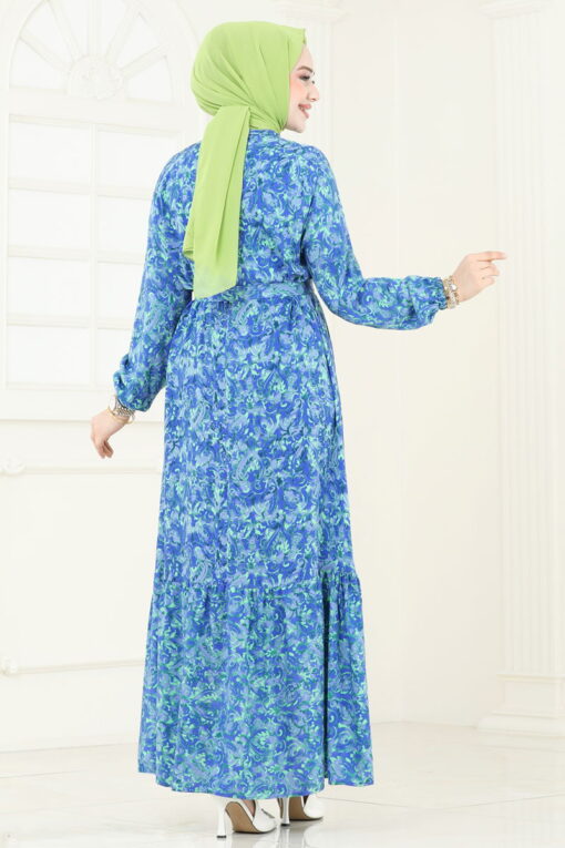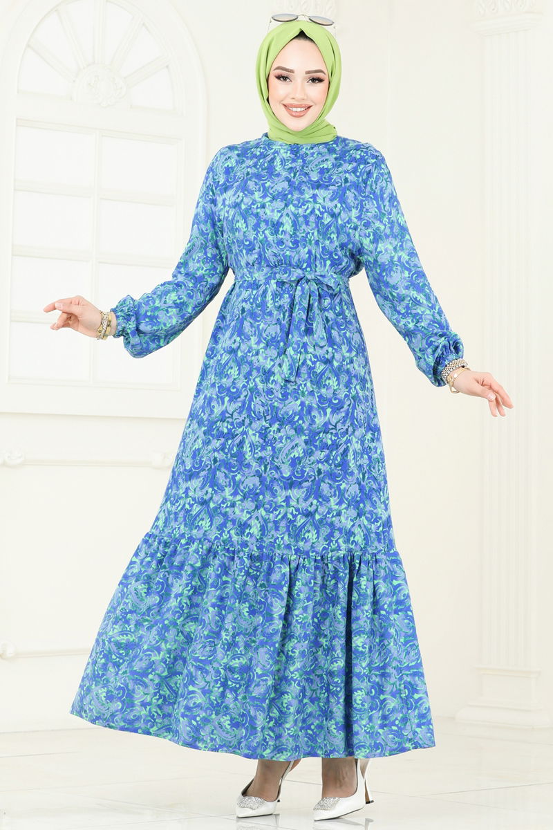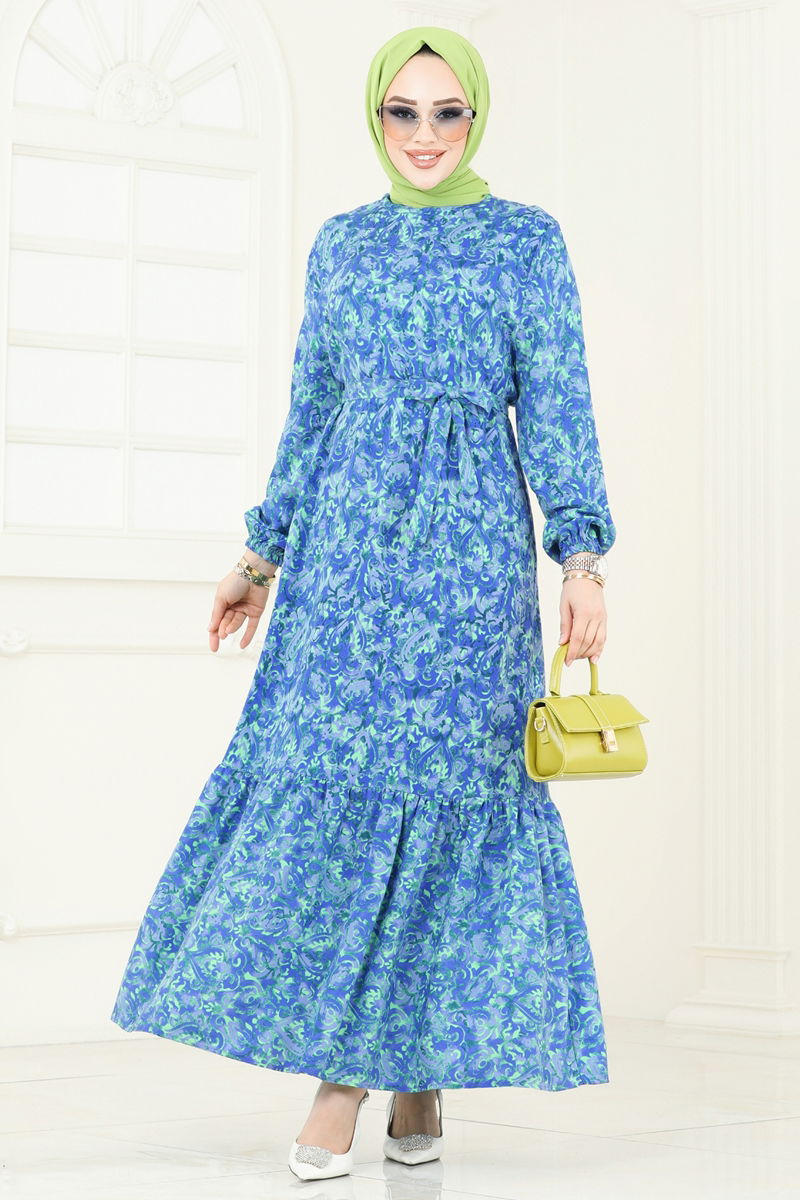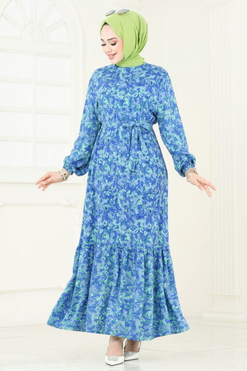 فستان حجاب من الفيسكوز منقوش باللون النيلي