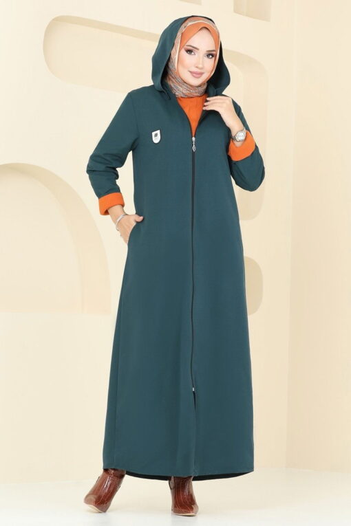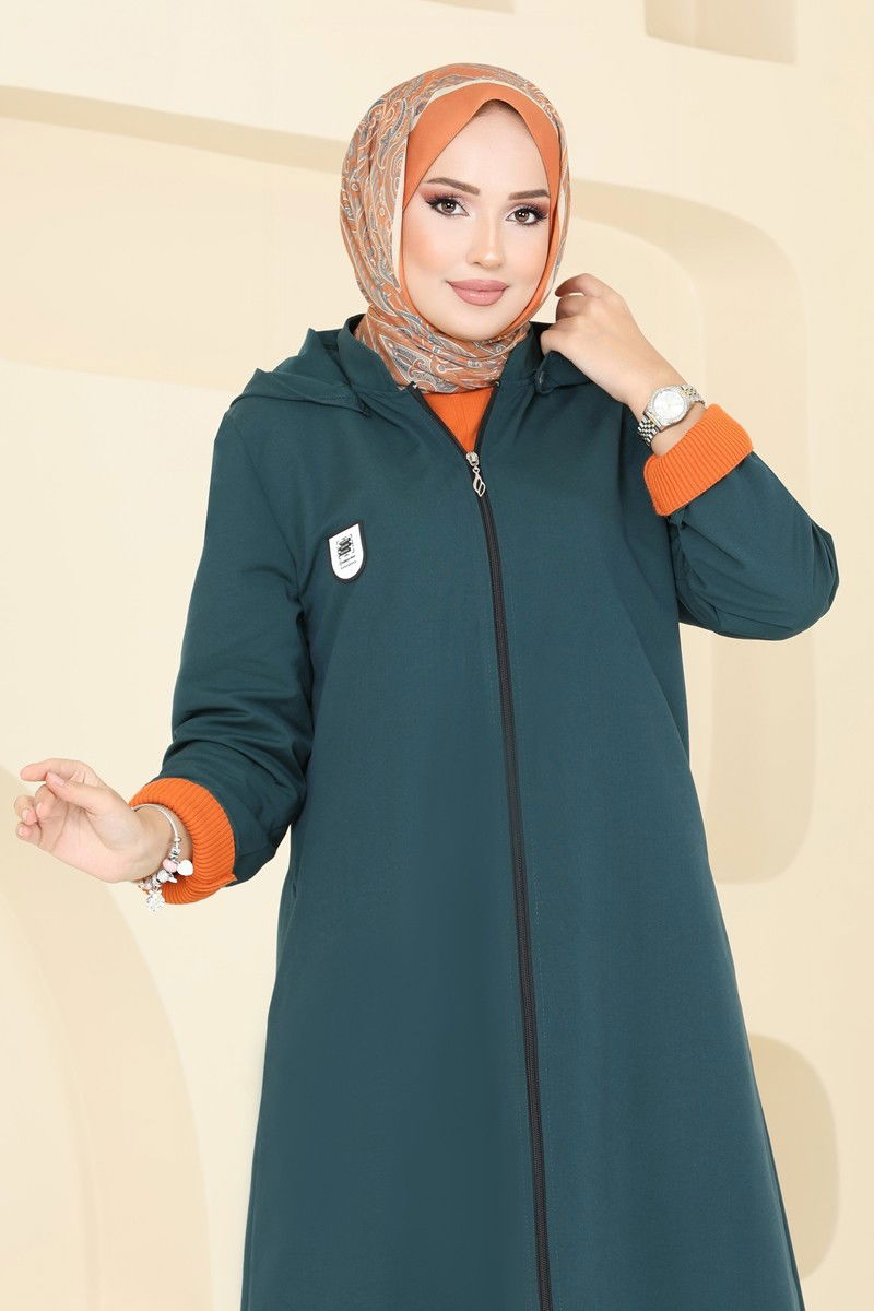 عباية المعطف الخفيف المفصلة هي منتج للحجاب مناسب للاستخدام في جميع الفصول. ويجب غسله على درجة حرارة 30 درجة دون دوران ومصنوع من قماش تورينو. المنتج مزود بياقة بغطاء للرأس وغير مبطن. المنتج مزود بسحاب أمامي ومقاس 40 على الموديل. تمت خياطة تفاصيل الشعار خصيصًا ويتوفر غطاء رأس اختياري. كما أنها تحتوي على تفاصيل الجيب.