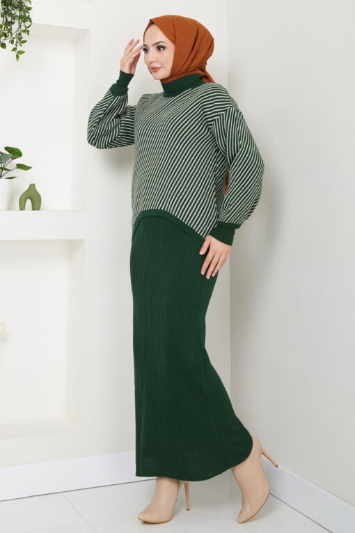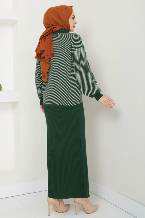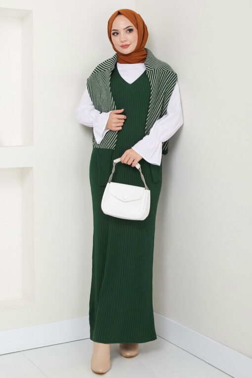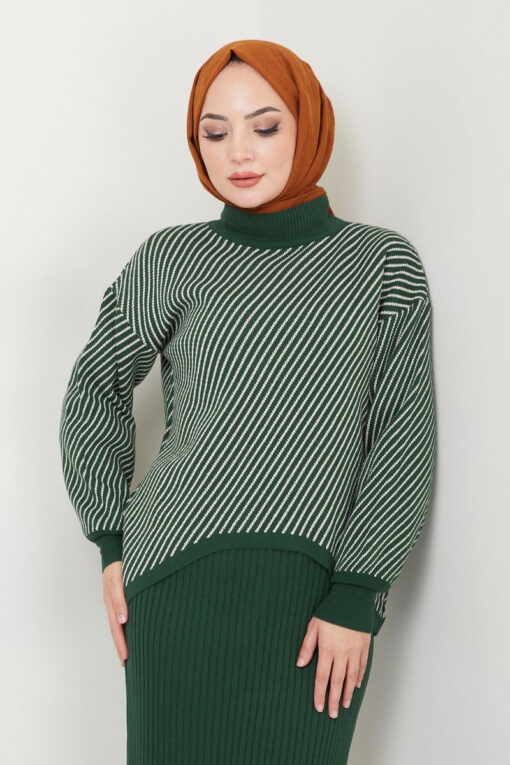 مجموعة سترة مخططة غير متناظرة هي منتج حجاب نموذجي. يمكن استخدامه في فصلي الخريف والشتاء. يجب غسله على درجة حرارة 30 درجة دون عصر. وهي مصنوعة من نسيج محبوك من الدرجة الأولى. المنتج ذو ياقة نصف رقبة وغير مبطن. مقاس المنتج الموجود في الموديل 38. الارتفاع: 160 سم، الصدر: 86 سم، الخصر: 68 سم، الأرداف: 95 سم، الوزن: 52 كجم. اللباس الداخلي يلبس من الرأس وهو بلا أكمام.
