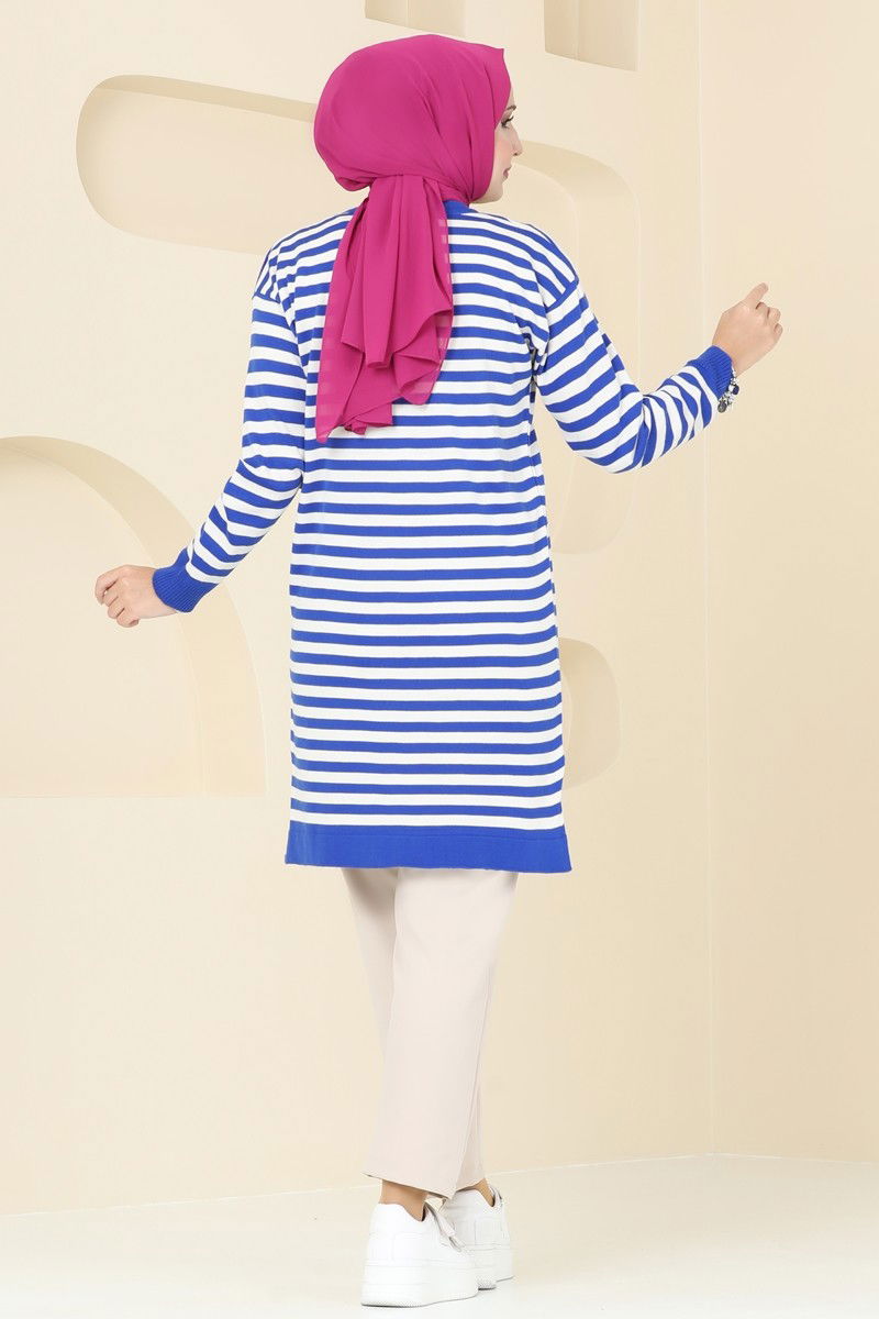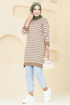 تونيك التريكو مع شق على الجانب هو موديل مناسب لارتداء الحجاب. يمكن استخدامه بسهولة في فصلي الخريف والشتاء. يجب غسل المنتج عند درجة حرارة 30 درجة دون الدوران وهو مصنوع من قماش التريكو. تتميز السترة ذات الرقبة الدائرية بتصميم فتحة جانبية وغير مبطنة. (المنتج الموجود في النموذج ذو حجم قياسي.)