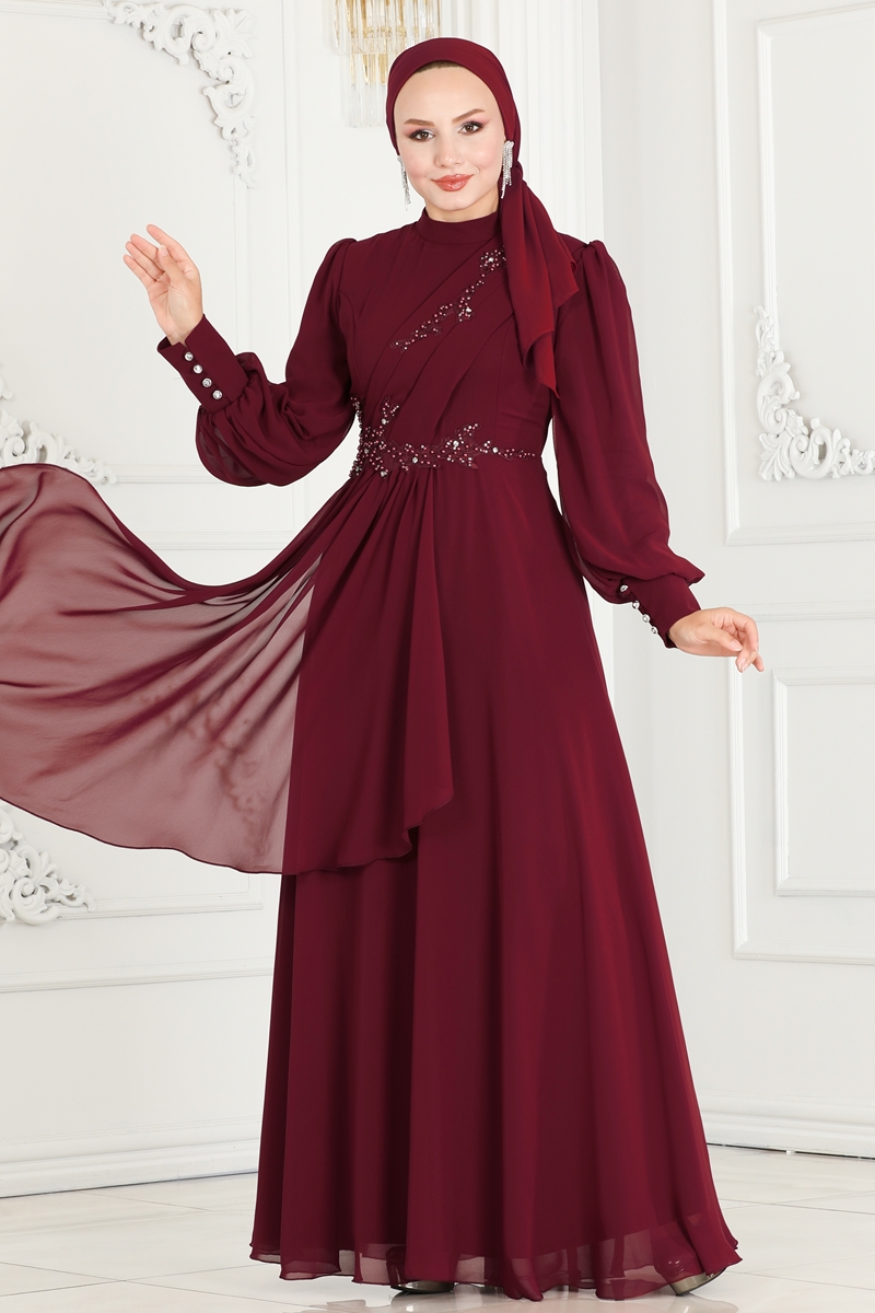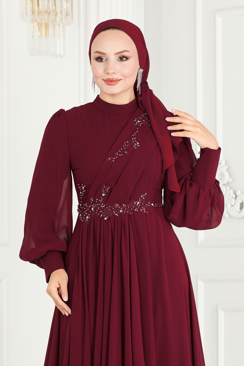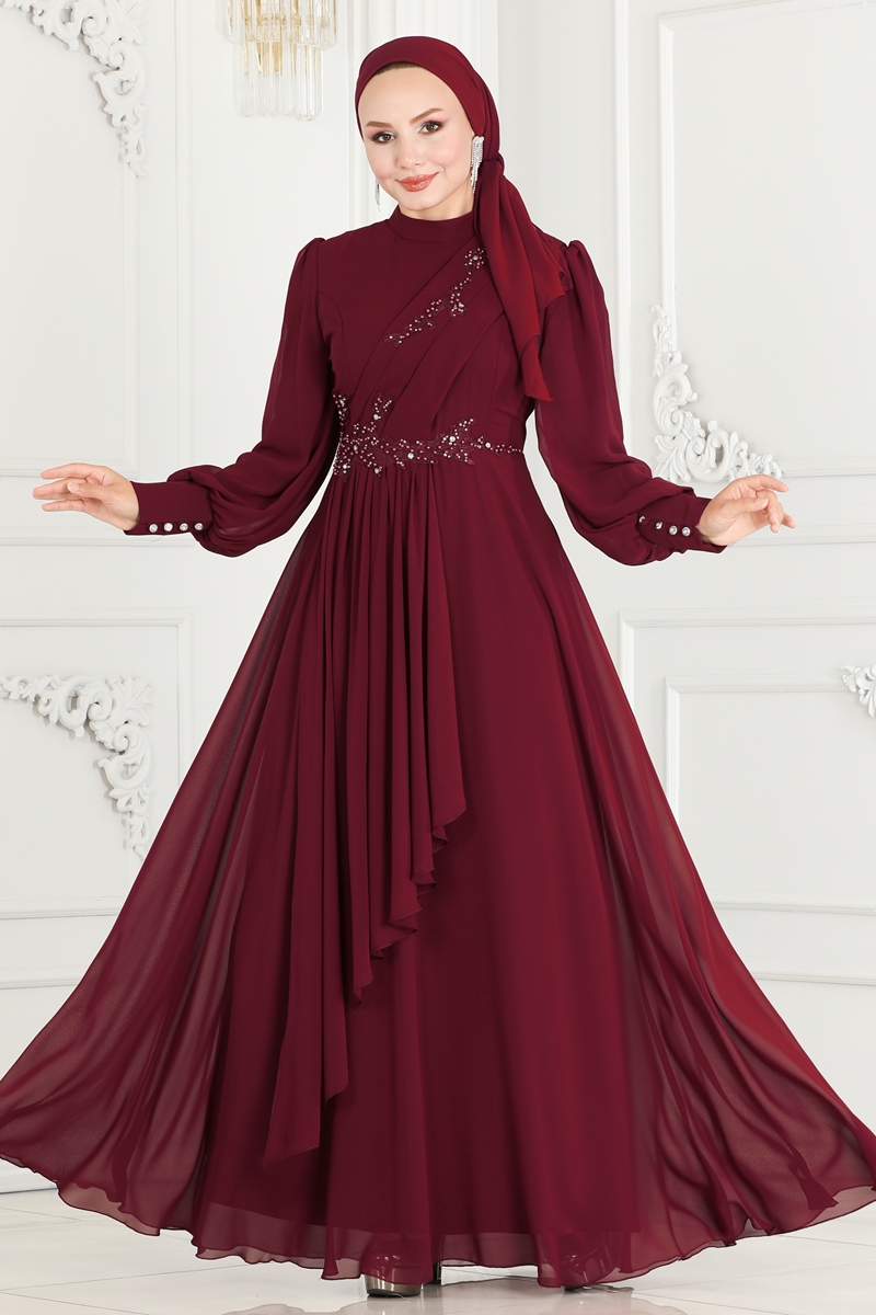 فستان سهرة شيفون مطرز بالحجر هو موديل فستان سهرة للحجاب يمكن ارتداؤه بسهولة في جميع الفصول. المنتج، الذي يتم تنظيفه بالتنظيف الجاف، مصنوع من قماش شيفون من الدرجة الأولى. فستان السهرة، ذو تفاصيل خط العنق شبه القفز، مبطن وبه سحاب في الخلف. المنتج الموجود في العارضة مقاس 38 ويتوافق مع الطول 165 سم، الصدر 80 سم، الخصر 66 سم، الوركين 100 سم و58 كجم. الحجارة معجونة وأزرار الكفة نشطة. خيارات الألوان للمنتج؛ بورجوندي، داستي روز، أرجواني داكن، بترولي، ساكس، أسود. خيارات الحجم هي؛ 50، 42، 52، 40، 38، 48، 46، 44.
