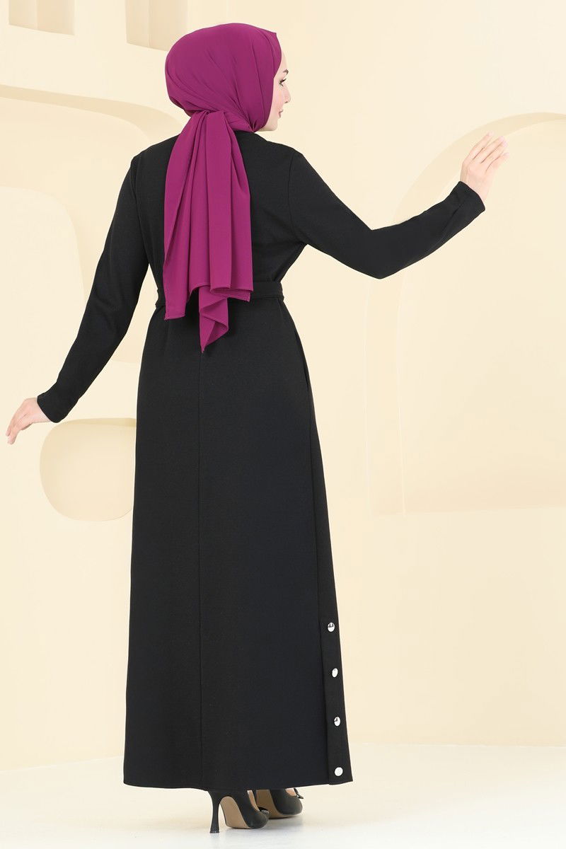 فستان الحجاب بنصف أزرار، جزء لا غنى عنه للموسم الجديد، مصمم لمساعدتك على قضاء أشهر الخريف والشتاء بأناقة. بينما يحافظ على راحتك على أعلى مستوى بفضل نسيج التويد الرقيق، يمكن تنظيفه بسهولة بغسل لطيف. إنه يوفر مظهرًا عصريًا بياقة نصف دائرية وتصميم غير مبطن. فهو يجمع بين الأداء الوظيفي والجماليات مع أزراره الأمامية القابلة للاستخدام وحزامه المصمم بشكل أنيق. يوفر النموذج استخدامًا عمليًا بمقاساته الـ 38 والجيوب الموجودة.