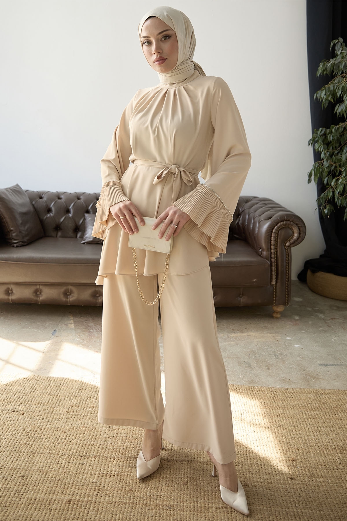 نهاية الأكمام مطوي. لديها تفاصيل الحجر.