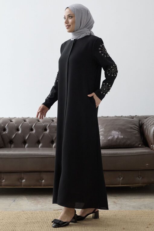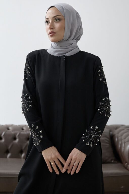 تحتوي على تفاصيل من الخرز والحجر على أكمامها.