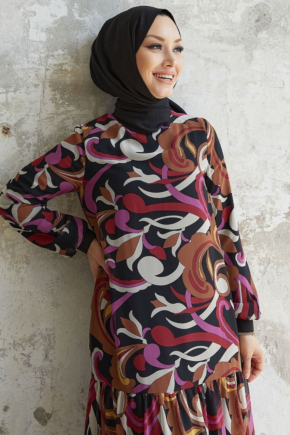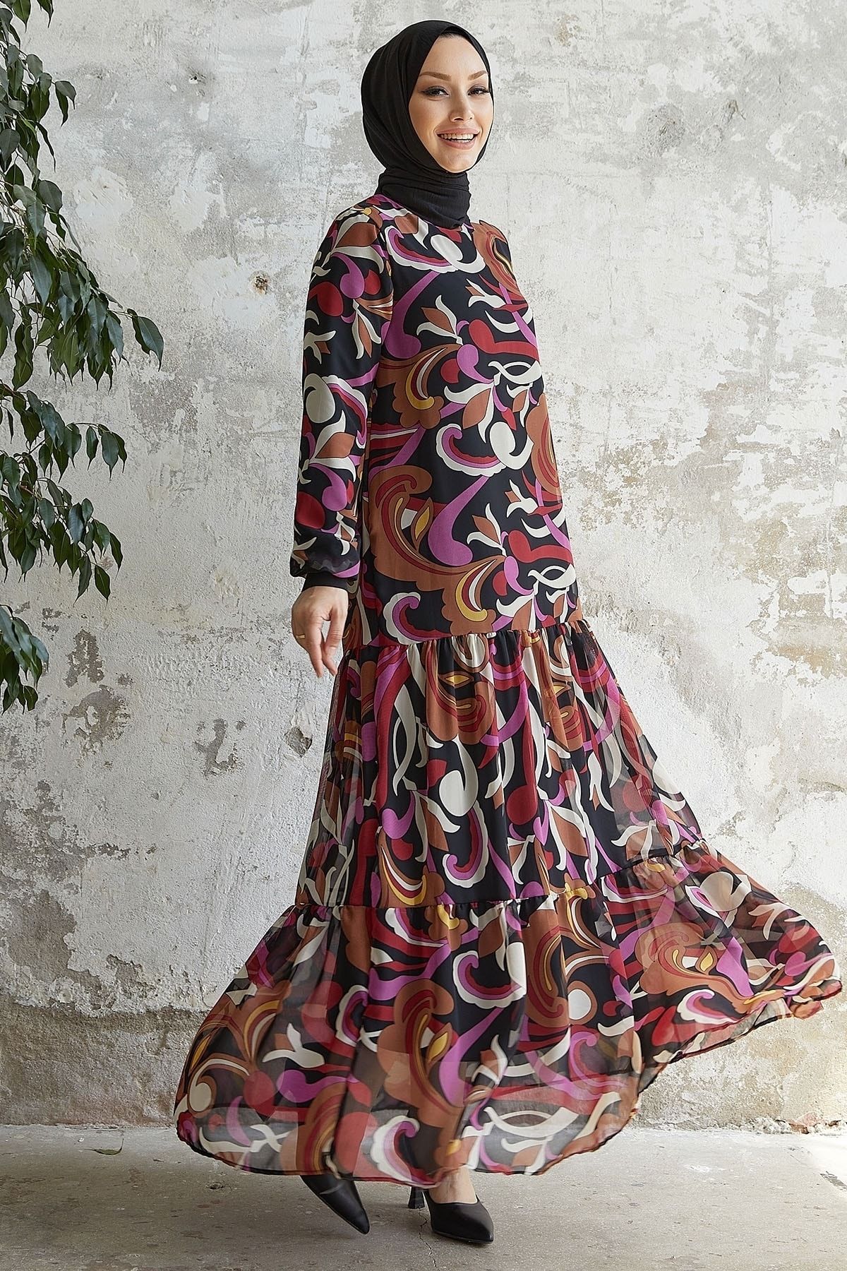 فستان شيفون مكشكش بتنورة منقوشة من Arzel