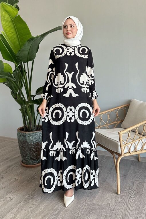 فستان فيسكوز منقوش بلون واحد