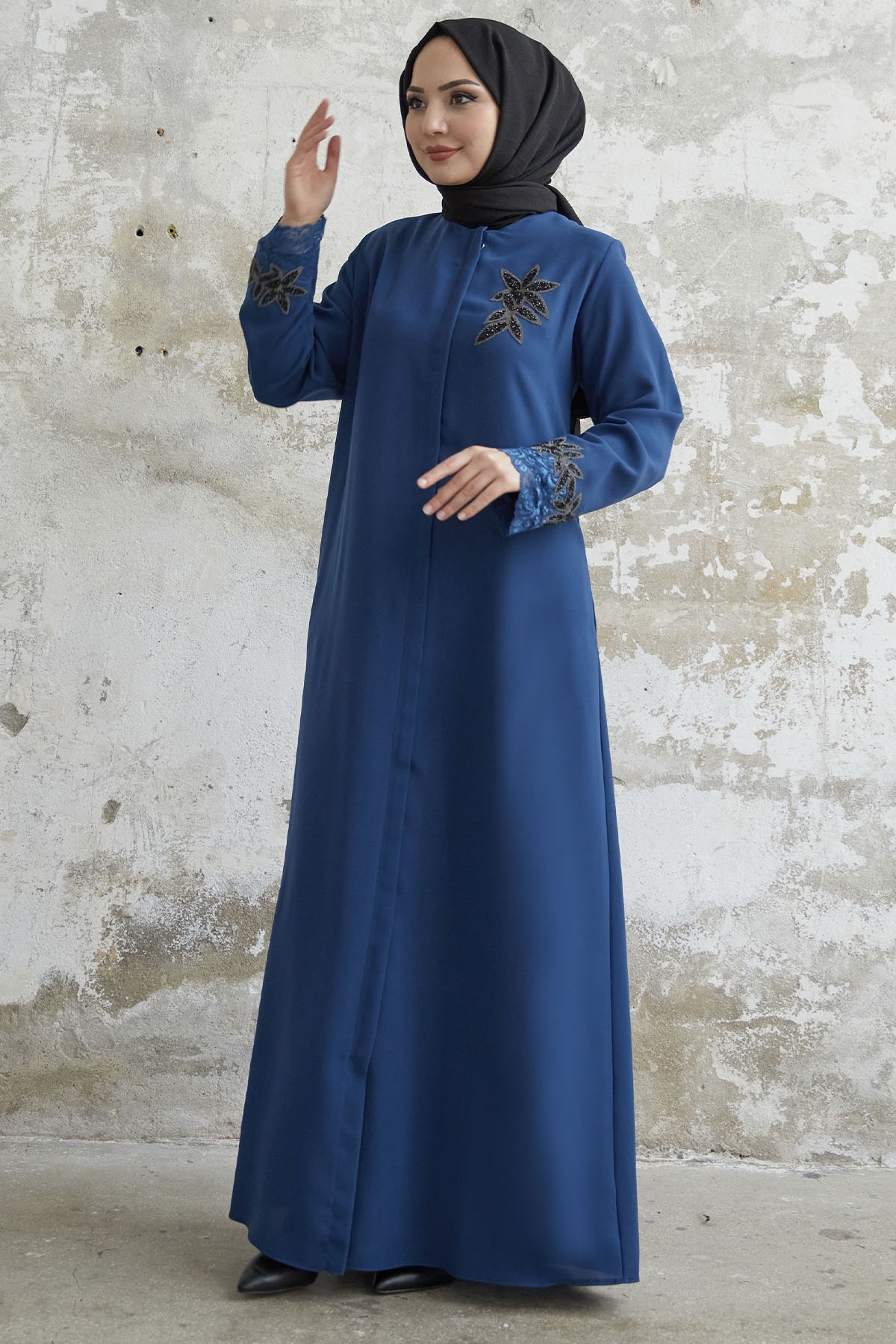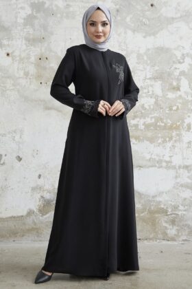وصف المنتج عباية مزينة بأحجار الزهور على الكم