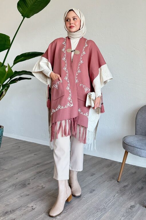 وقد تم تنسيق التطريز مع تفاصيل الشرابة.