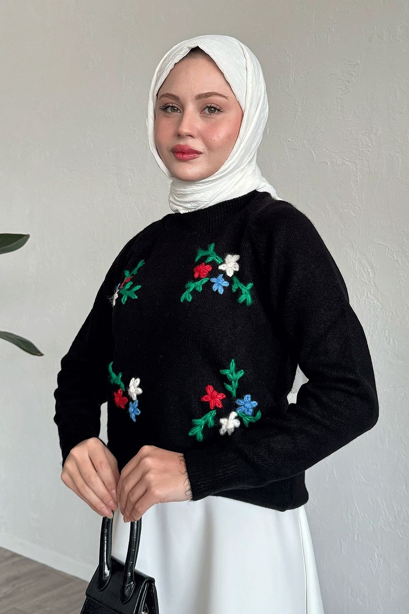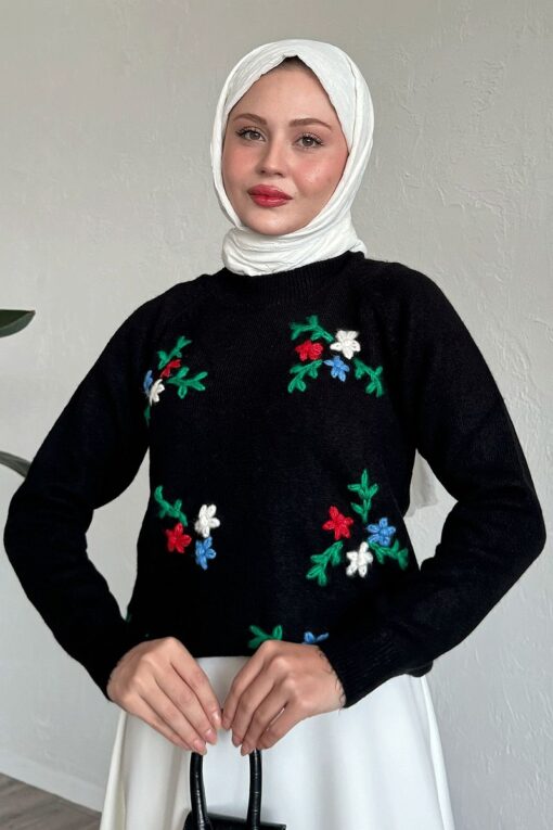 سترة ناعمة مطرزة بالزهور