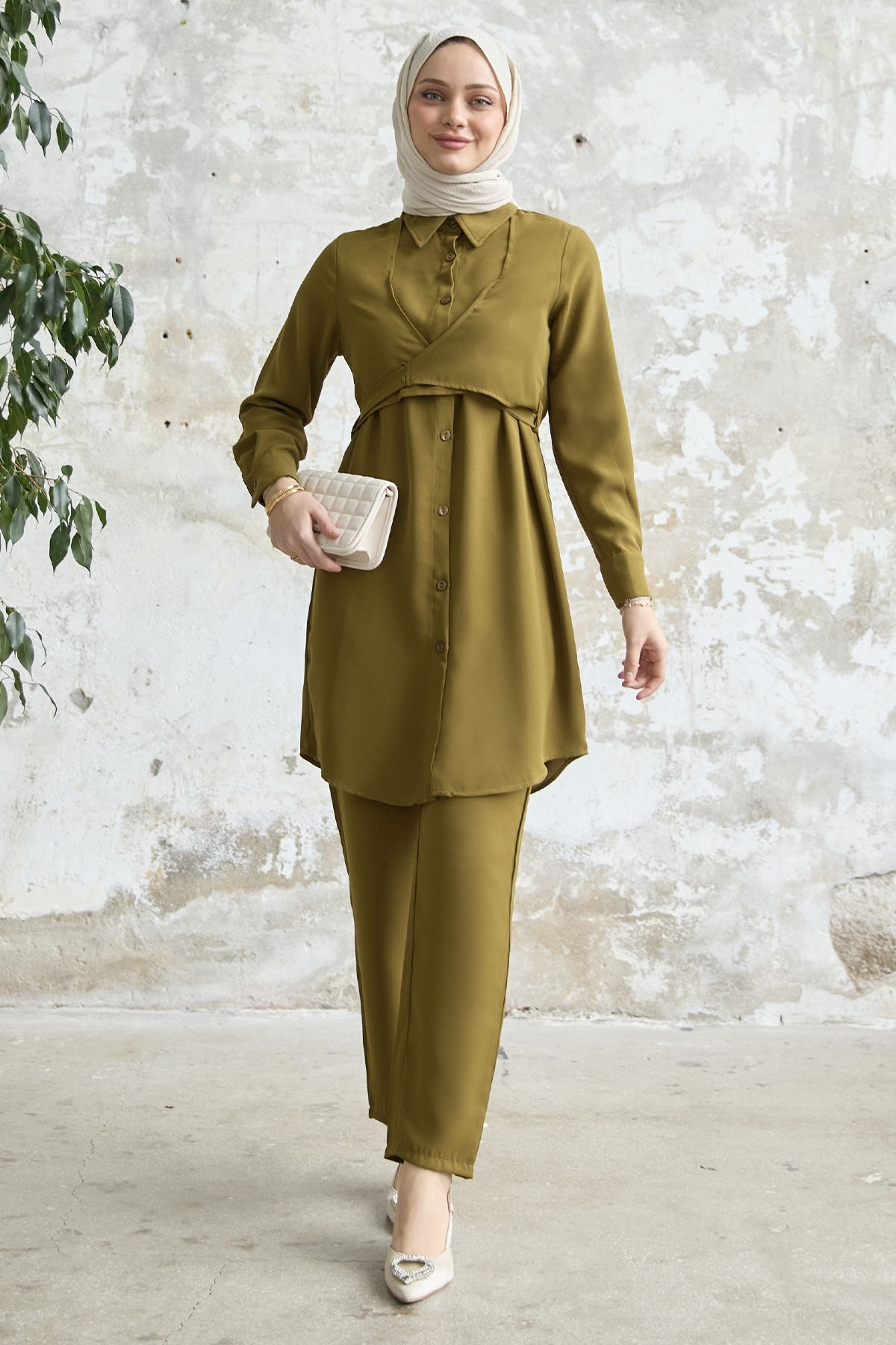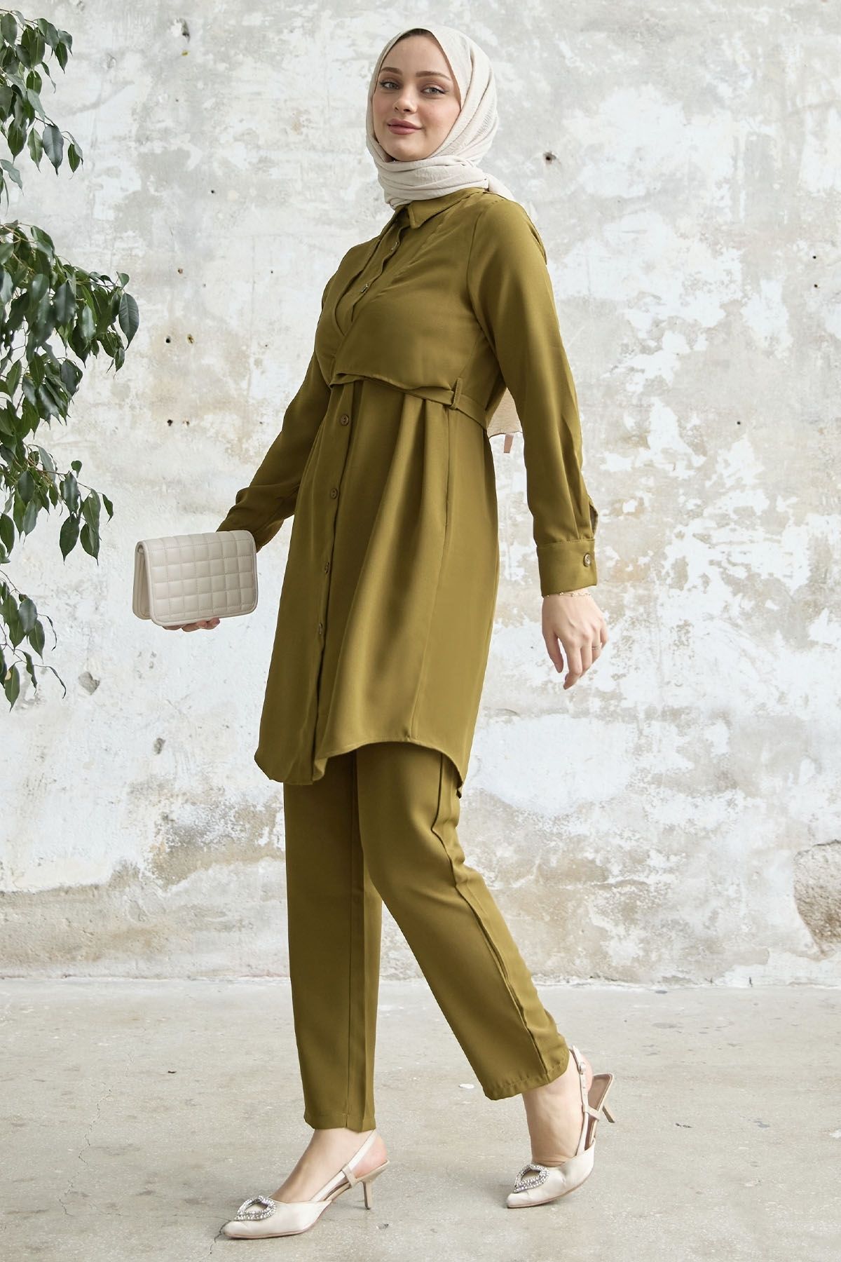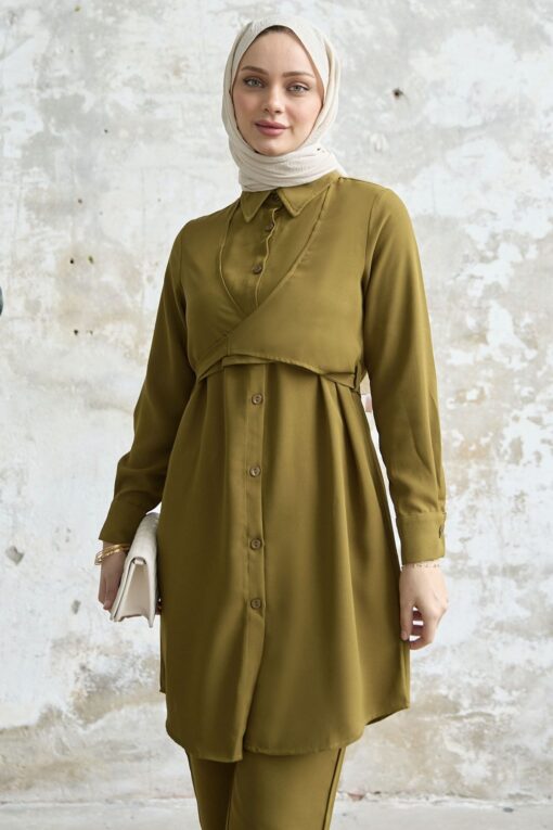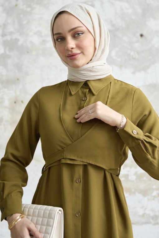 إنه طوق القميص. يجب أن يصل الزر إلى الخصر.