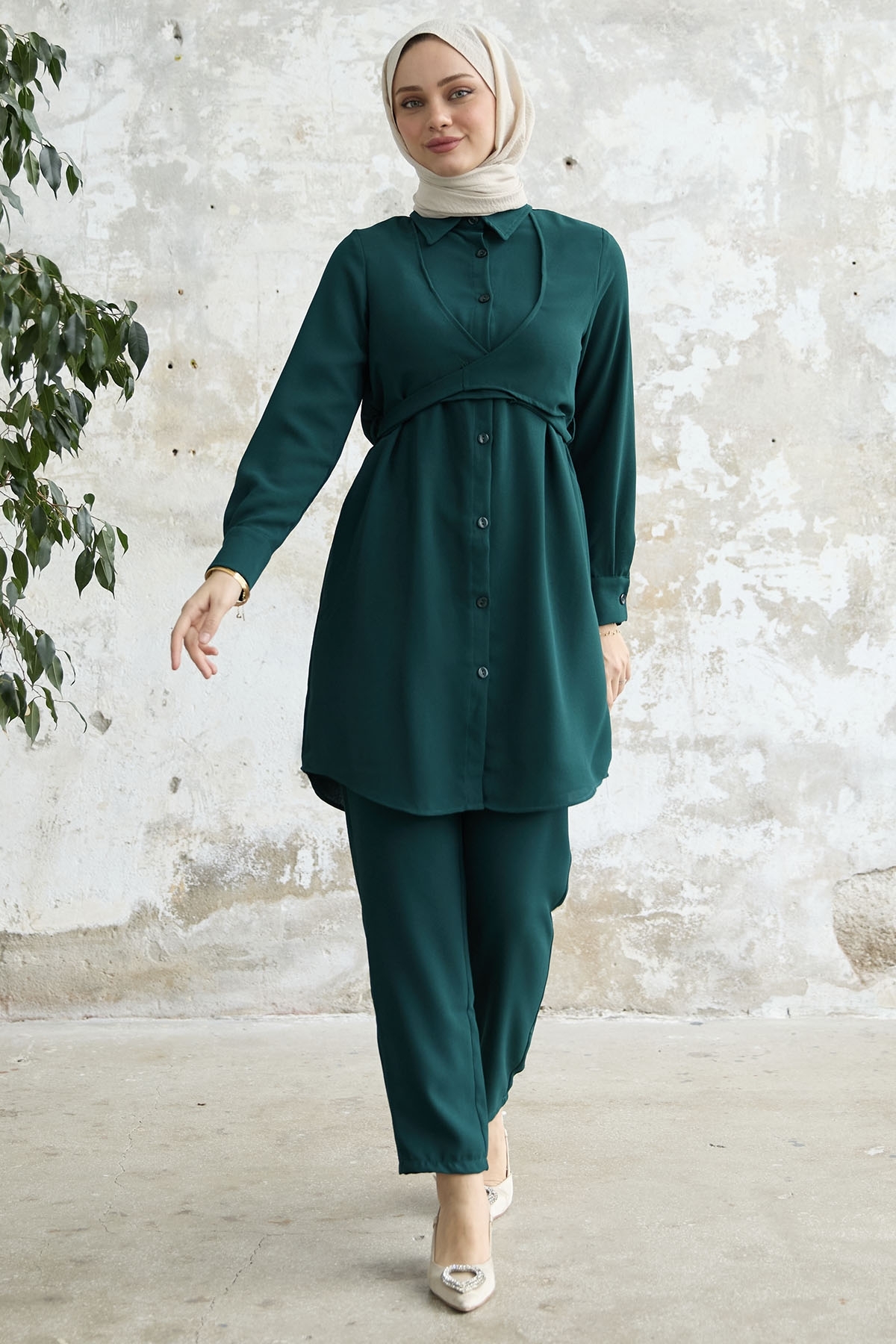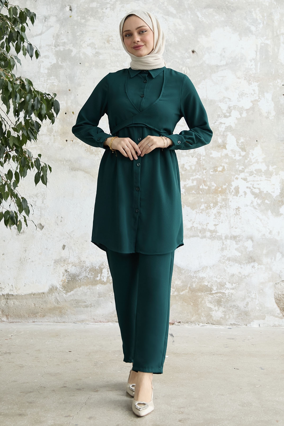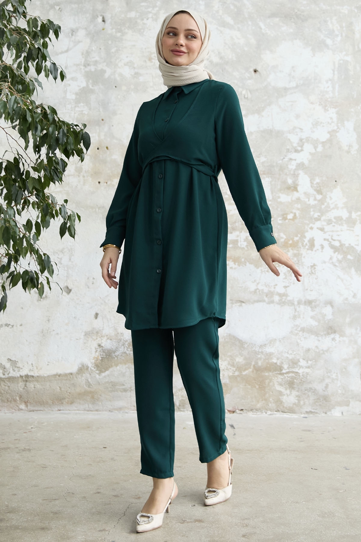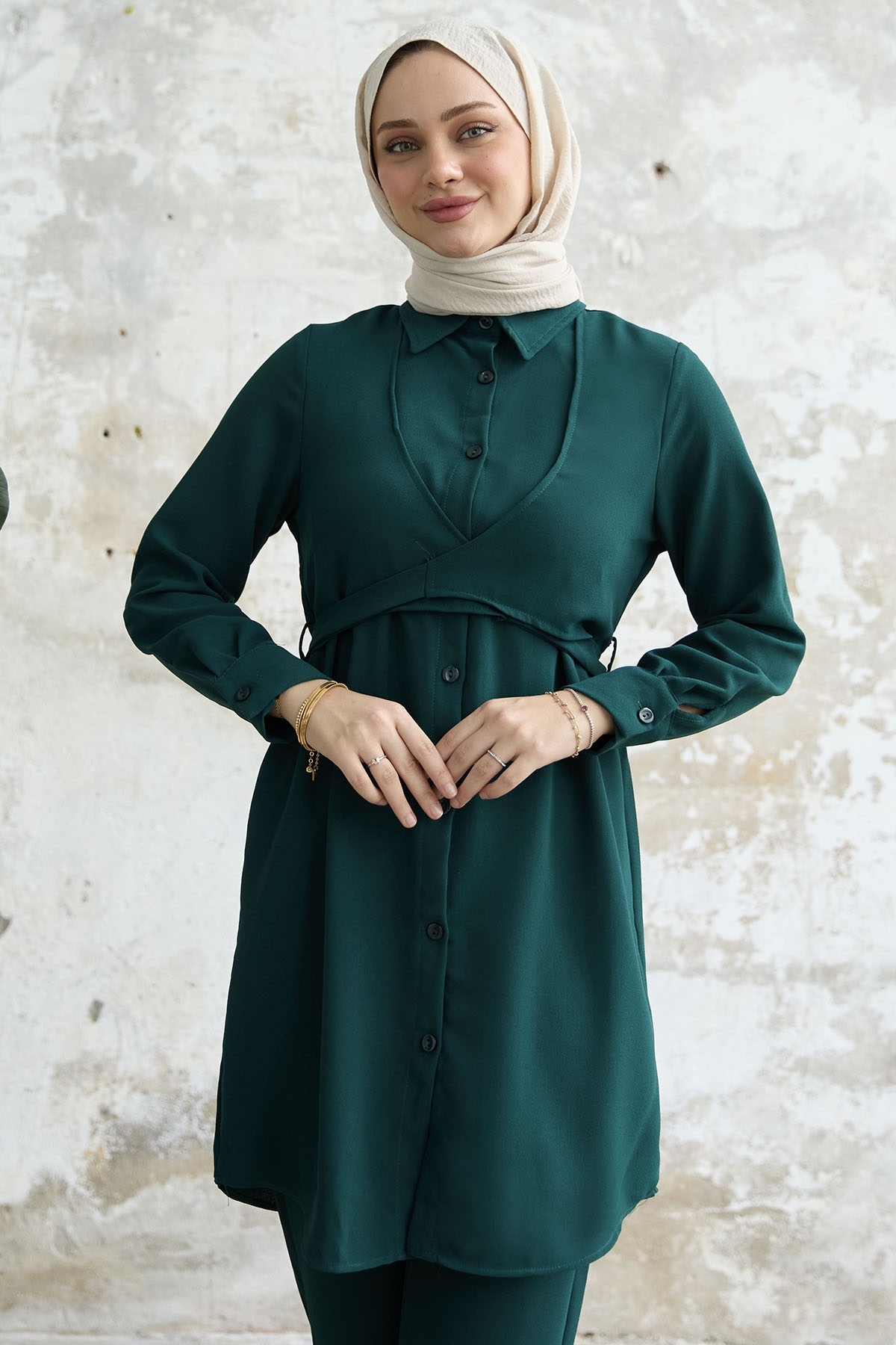 إنه طوق القميص. يجب أن يصل الزر إلى الخصر.