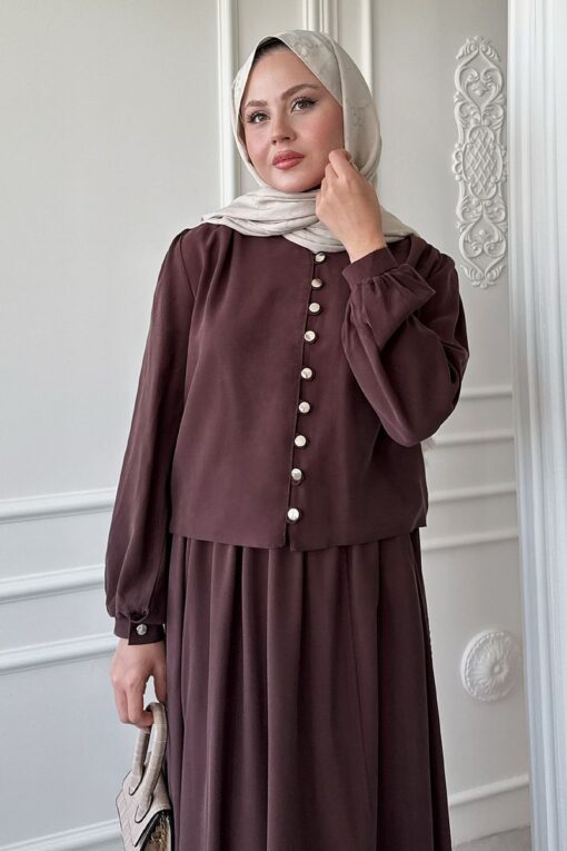 أكمام البلوزة تحتوي على تفاصيل الأزرار.