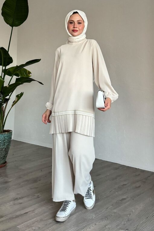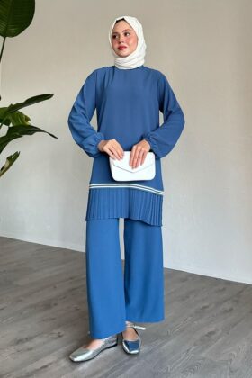 بدلة مزدوجة بحاشية مطوية وأنابيب